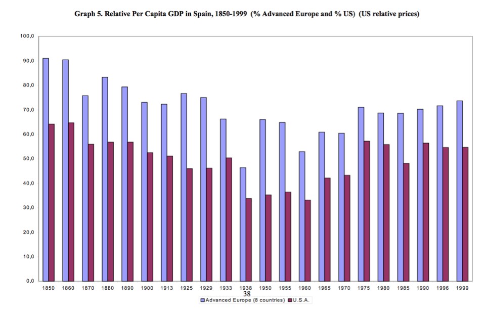 Si nos fijamos en la desigualdad de nuestro PIB per cápita con la de otros países desarrollados, vemos que esa divergencia creció de 1850 a 1950 y se redujo desde 1950 hasta el 2000.
