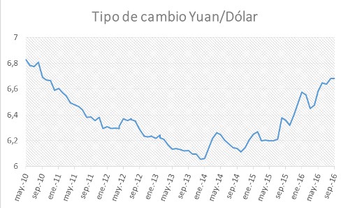 Desde mediados de 2005, el yuan tiene un tipo de cambio flotante, por lo que se espera que este tipo de fluctuaciones las absorba en primer momento el tipo de cambio y parcialmente así ha sido. El yuan se ha depreciado ya casi un 8% desde mayo de 2015 (venía apreciándose desde la última vez que se estableció el tipo de cambio flexible).