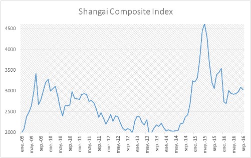 Las alarmas sobre mercado chino suenan desde al menos mayo de 2015, cuando el índice bursátil más importante del país caía en picado llegando a perder más de un tercio de su valor en apenas 3 meses y más de un 40% en 6 meses (aunque el índice había llegado a ganar más de un 125% en el año anterior).