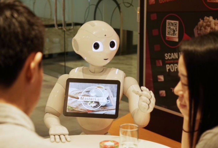 Pepper, un robot con cara de niño, se ha instalado en muchos establecimientos de la compañía en Asia. Tiene capacidad para reconocer a los clientes, tomar pedidos y cobrar.