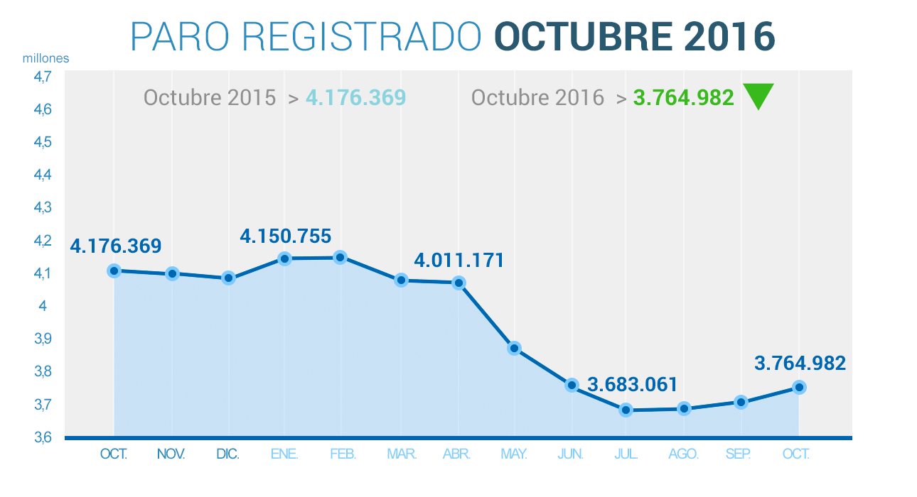 Si a ello se suma, además, que el desempleo acumula una caída de 411.387 personas en el último año (-9,8%), su mayor descenso interanual en octubre de toda la serie histórica, el balance en materia de paro es muy positivo.