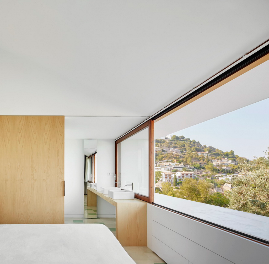 Las habitaciones se orientan a Este, al jardín y al Castillo de Bellver; la zona de estar y comedor a Sureste, al mar y al jardín; la cocina se orienta a Sur y a la huerta; y, en el altillo sobre el salón, la terraza mirador se orienta hacia las vistas sobre el mar y cuenta con un ventanal sobre el salón orientado a Sur permitiendo que el sol de invierno caliente la zona principal de la vivienda mientras que un retranqueo del ventanal protege del sol en verano.
