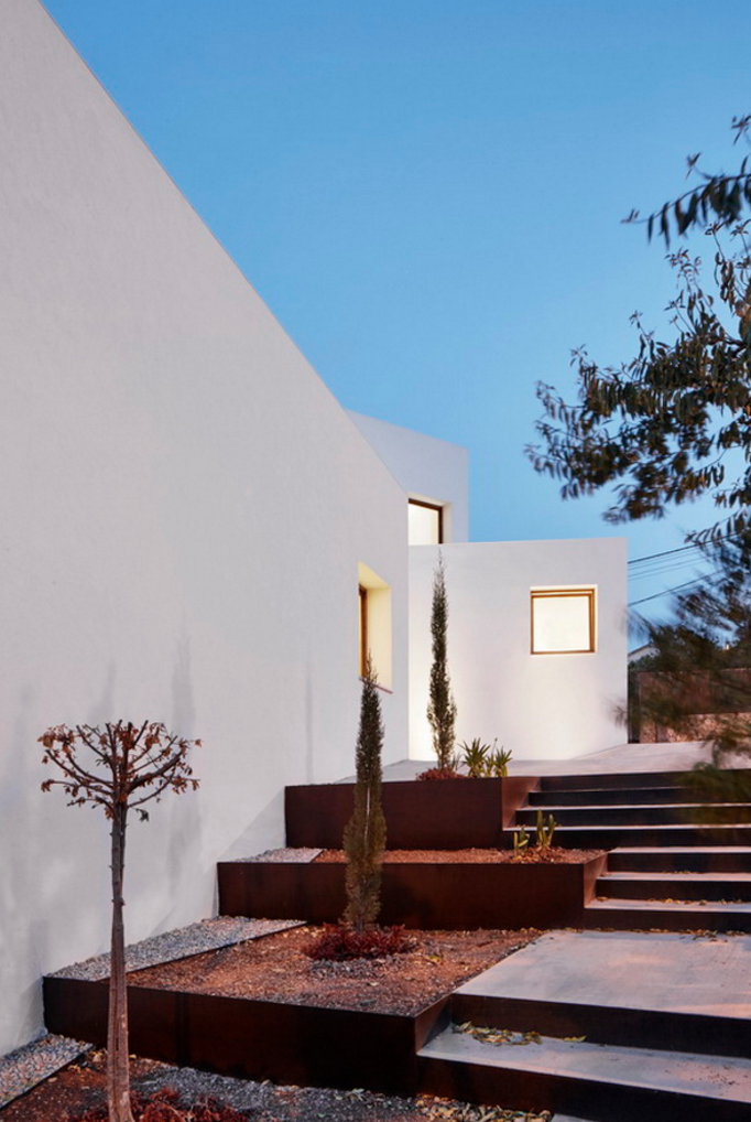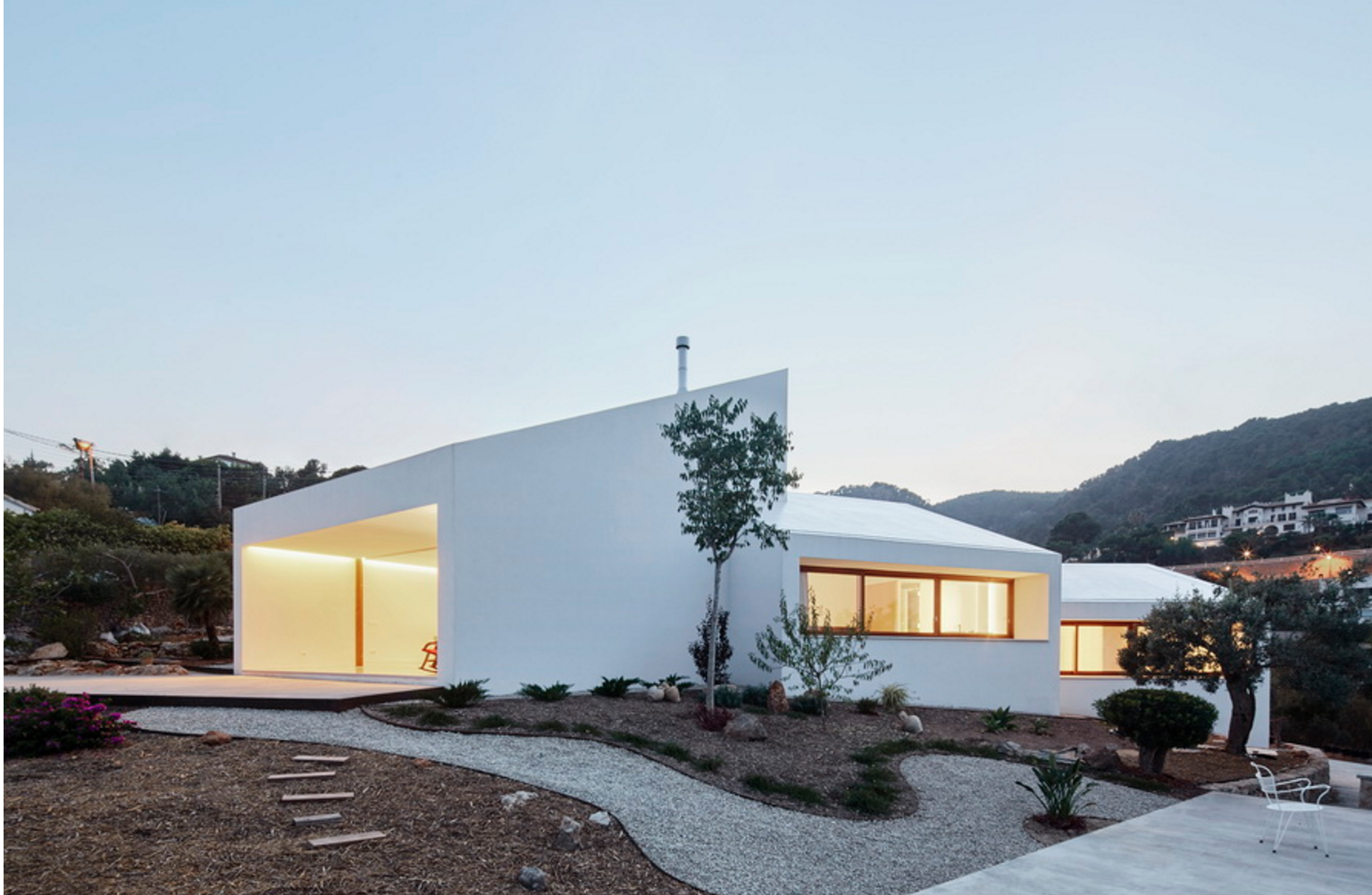 La casa utiliza la orientación solar y la pendiente del terreno para conseguir la máxima eficiencia energética.