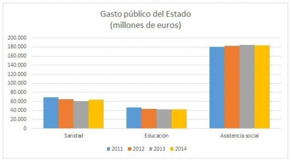 El problema del déficit, por tanto, no es de escasos ingresos, sino de gastos excesivos. De hecho, los recortes durante la pasada legislatura brillan por su ausencia, tal y como muestra el siguiente gráfico, elaborado por el economista Juan Ramón Rallo.