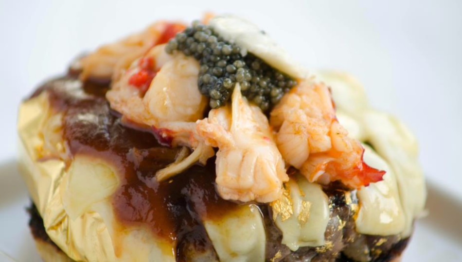 En este restaurante de Reino Unido, sirven una hamburguesa de 1.400 euros. La carne es de Kobe Wagyu e incorpora una bola de queso brie de trufa negra, sal del Himalaya, caviar de beluga y pan de oro.