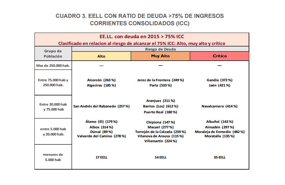 La mayor parte de los ayuntamientos que superan esta ratio tienen capacidad para amortizar esta deuda en menos de 15 años, aunque 90 de ellos no podrán hacerlo en ese plazo y de ellos, 66 no podrían retornar a un nivel de deuda sostenible en menos de 25 años.