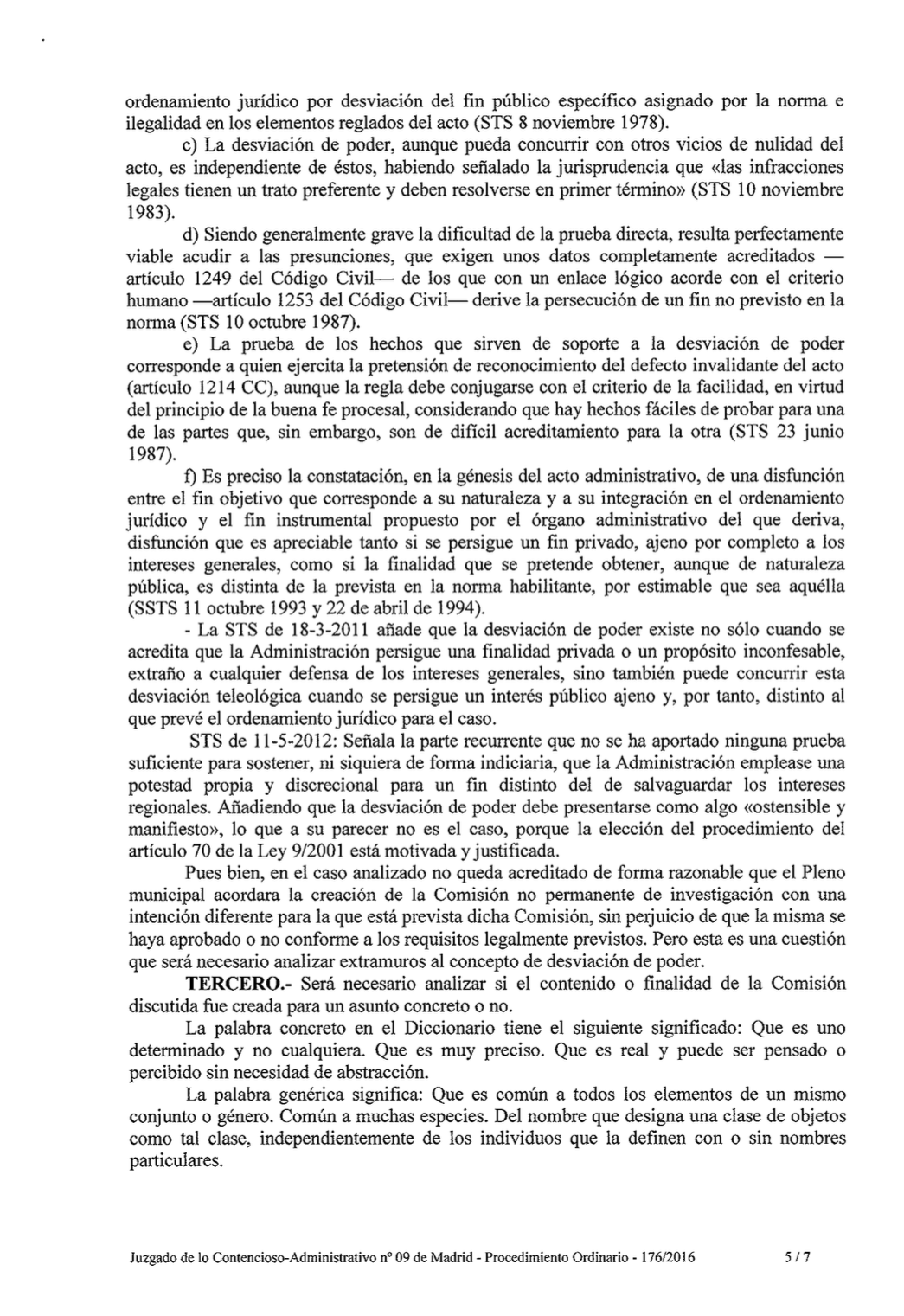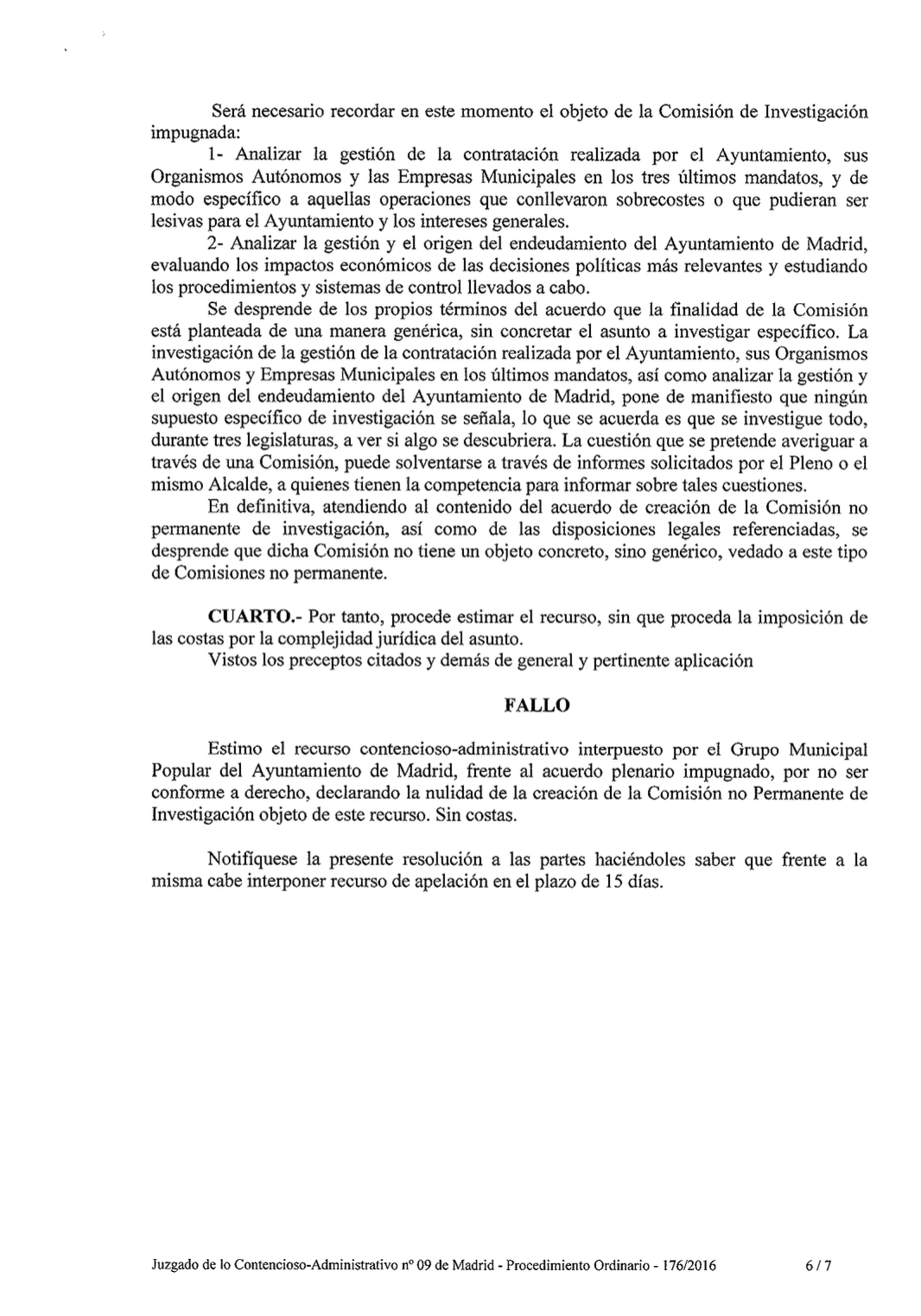 La sentencia va más allá y destaca la vaguedad y la falta de rigor de la Comisión impulsada por Ahora Madrid, apuntando que"lo que se acordó es que se investigue todo, durante tres legislaturas, a ver si algo se descubriera". En consecuencia, no sorprende que se haya declarado la nulidad de la Comisión, que deberá ser desmantelada en los próximos días.