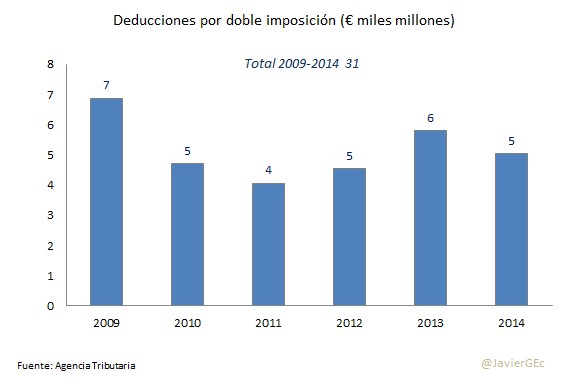 Las deducciones por doble imposición, que evitan que una misma renta pague dos veces por el Impuesto de Sociedades, han ascendido en los últimos años a 31.000 millones de euros, una cuantía similar al de la compensación por pérdidas.
