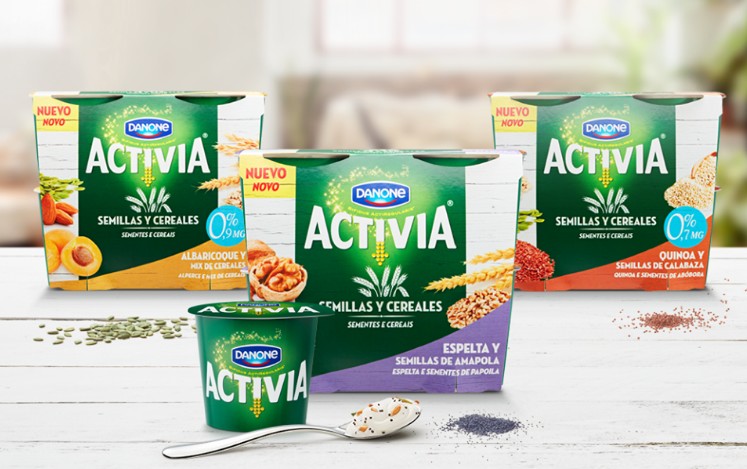 Esta nueva gama de yogur Activia incluye ingredientes como quinoa, semillas de calabza, semillas de amapola o espelta.