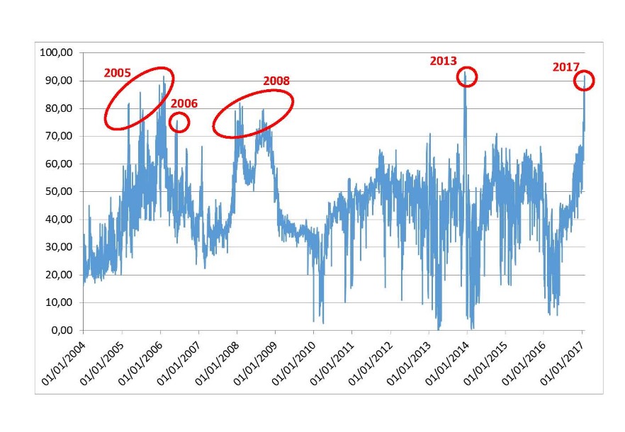 El ministro también incidió en el encarecimiento que vienen registrando el petróleo y el gas en los últimos meses. Esa es otra de las razones que influye en la electricidad de toda Europa. La subida de las materias primas en los mercados internacionales durante los últimos ocho meses ha sido de un 80% para el petróleo, de un 172% para el gas y de un 125% para el carbón.