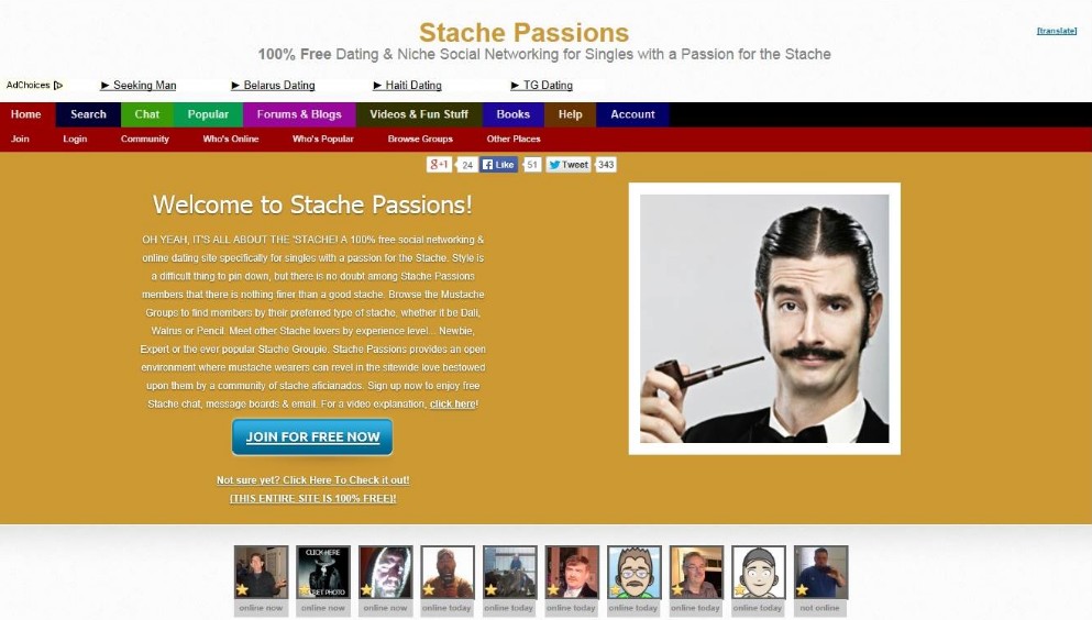 Esta red social está dirigida a usuarios con bigote. Pueden subir fotografías, chatear y compartir expereciencias.
