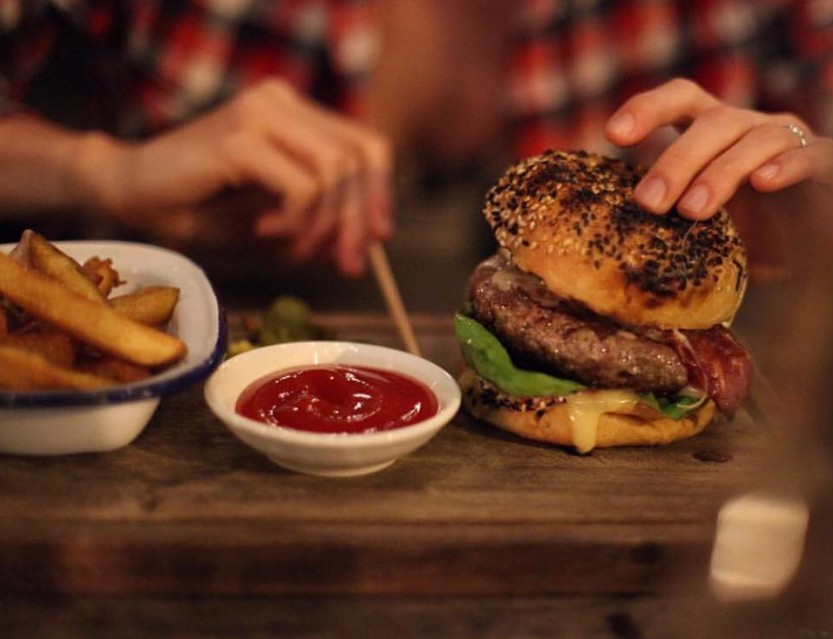 Cerveza artesanal y comida vegetariana india hacen de este lugar uno de los más cotizados para comer hamburguesa. Su precio ronda los 5 euros.