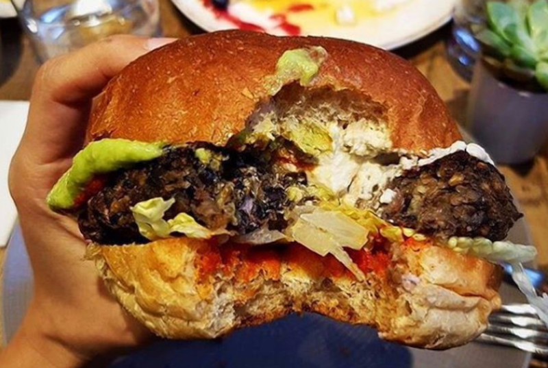 En este restaurante vegetariano se toma una de las mejores hamburguesas del mundo. Lleva champiñones, aguacate, alioli y pan de masa vegana.