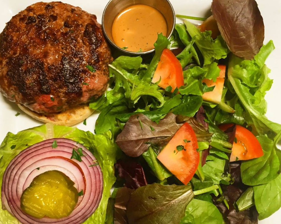 Hay varios tipos de hamburguesas, aunque la más conocida lleva cebolla caramelizada. Se acompaña de patatas fritas o de lechuga. El menú de mediodía tiene un precio de unos 30 dólares.