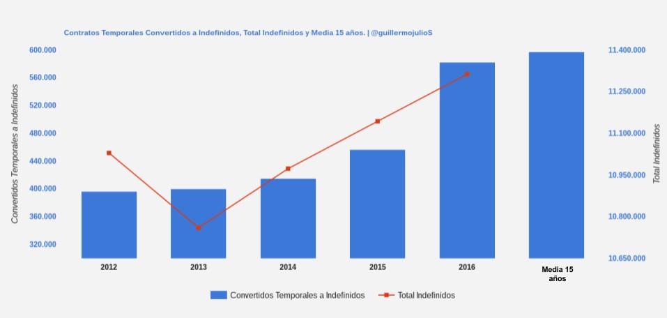 El número de contratos temporales convertidos a indefinidos se situó en un total de 582.026 en el conjunto de 2016, según un informe publicado esta semana por la empresa de recursos humanos Randstad. Estas cifras despejan las dudas sobre el buen ritmo del mercado laboral en 2016 y desmienten los argumentos de que la reforma laboral llevada a cabo por el Gobierno ha hecho desaparecer el empleo indefinido, cuando, en realidad, es todo lo contrario.