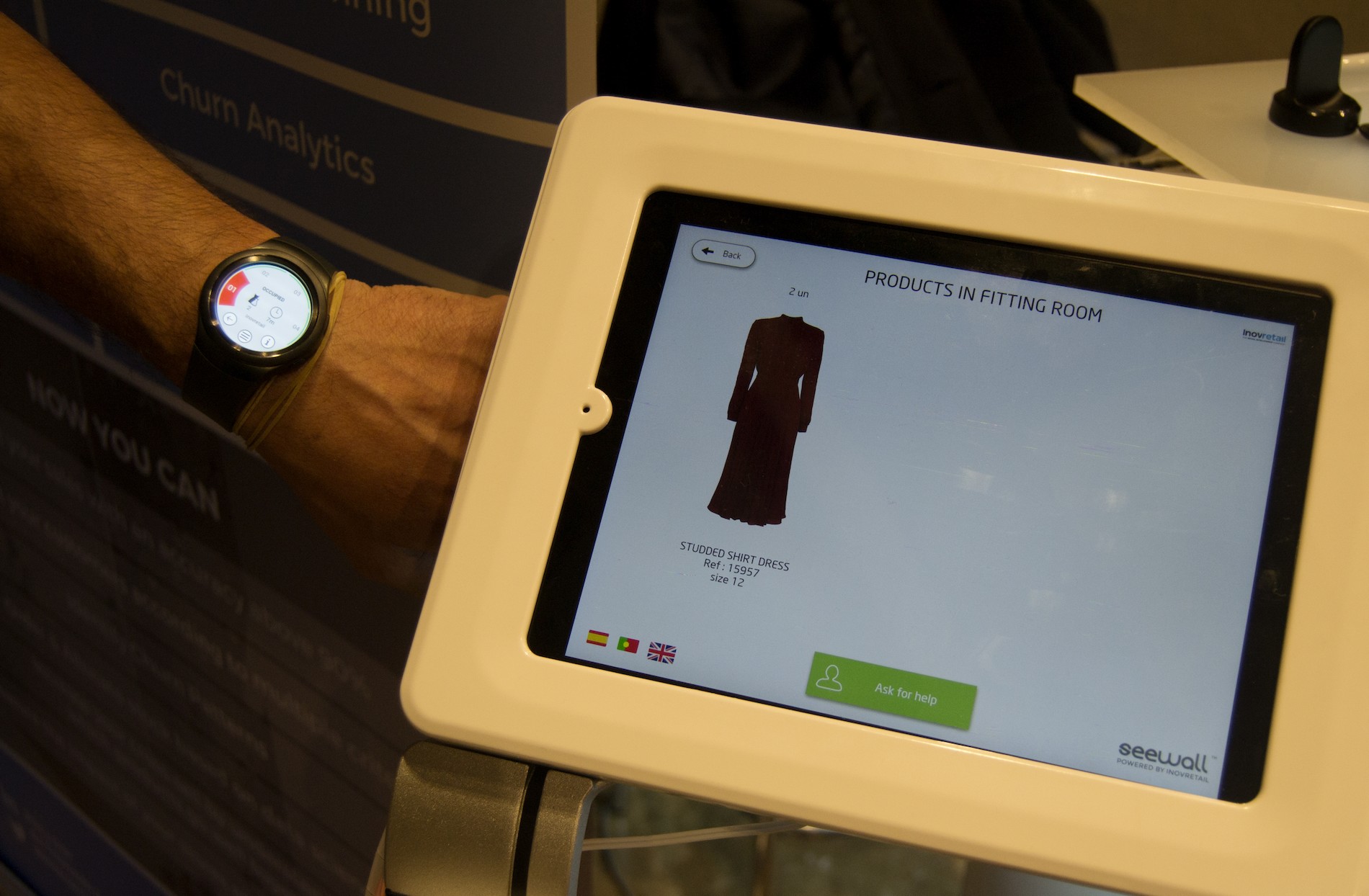 - Probador inteligente: cada vez está más extendido en las tiendas de nuestro país. Se trata de probadores que cuentan con pantallas interactivas en su interior mediante las que el cliente puede solicitar una talla al empleado, consultar las prendas que más combinan con la que se está probado e incluso, realizar pagos. En Inovretail han diseñado unos relojes para que los trabajadores del establecimiento estén en constante comunicación con las solicitudes que realiza el cliente desde la tablet.