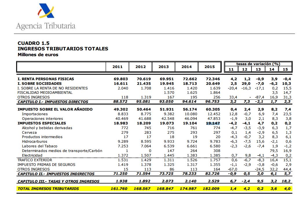 Con estos números tan grandes, habrá quien se pierda un poco. Por eso, los autores del informe ha intentado situarlos en su contexto. Teniendo en cuenta que la recaudación del IRPF prevista para 2016 era de unos 76.000 millones, derogar las reformas de las pensiones equivaldría a subir este impuesto un 70% a todos los contribuyentes. Habrá quien piense que hay otros impuestos que podrían ayudar a la tarea, no sólo el IRPF. Bien, pongamos en contexto las cifras de los ingresos tributarios totales según el Informe anual de recaudación tributaria del año 2015, el último con datos cerrados disponible en la web de la Agencia Tributaria: