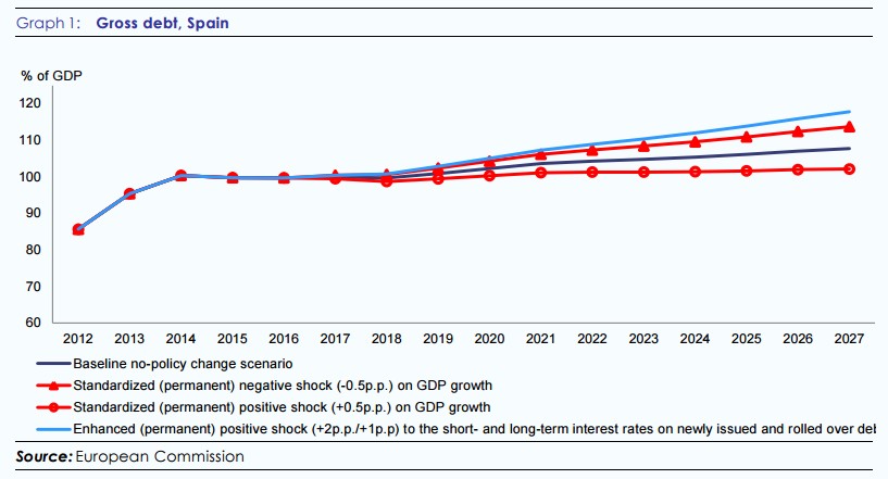 Pero hay un aspecto que destaca por encima de todos los demás. Una cuestión en la que el documento vuelve una y otra vez. Un peligro que sobrevuela cualquier análisis que se haga sobre la economía española: la deuda pública.