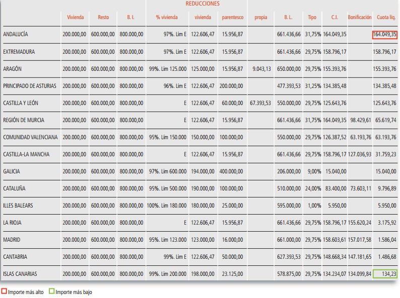 Así pues, heredar en Andalucía cuesta 100 veces más que en Madrid y hasta 1.000 veces más que en Canarias. Asimismo, heredar en Madrid cuesta casi diez veces menos que en Cataluña (9.797 euros).