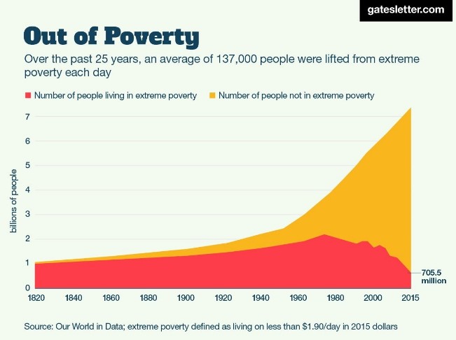 Bill y Melinda Gates han enviado una carta que pone de manifiesto los avances en materia de pobreza, enfermedades y desigualdad. La carta está ilustrada con varios gráficos, tablas y estadísticas que corroboran las mejoras a lo largo de los últimos años, pero son cuatro los gráficos que el matrimonio Gates considera más importantes, tal y como destaca el Foro Económico Internacional.