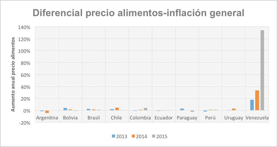 Los controles de precios han hecho desaparecer de facto las mercancías objeto de dicho control, tal y como la teoría económica predice. Los precios de muchos alimentos, al tener que comerciarse en el mercado negro, no han hecho más que dispararse. El crecimiento del precio de los alimentos en 2015 ha sido mayor al 130% en términos reales (una vez descontada inflación). Estos datos no hacen más que constatar la emergencia alimentaria que sufre Venezuela.