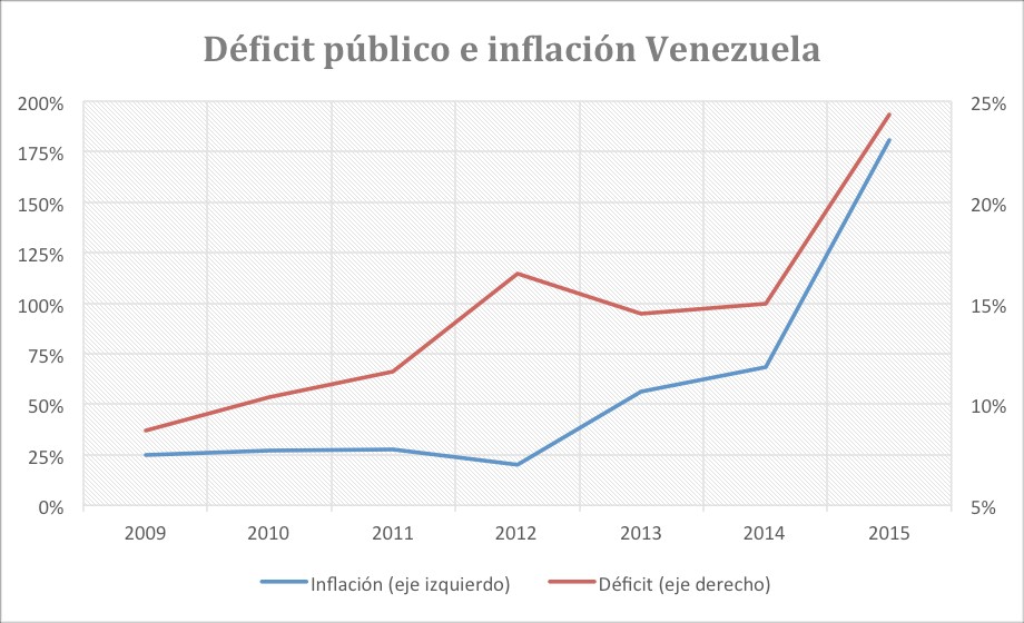El Gobierno venezolano, siempre falto de fondos y ahora sin la "ayuda" del petróleo caro, no ha tenido reparo en monetizar toda la deuda pública necesaria para cubrir sus crecientes gastos públicos sin aumentar la recaudación fiscal. Esto evidentemente ha creado una situación de hiperinflación en el país en la que incluso han empezado a aparecer clubes de trueque. La destrucción del dinero significa destrucción de la división del trabajo. En este entorno, una caída de un 10% anual del PIB es perfectamente comprensible.