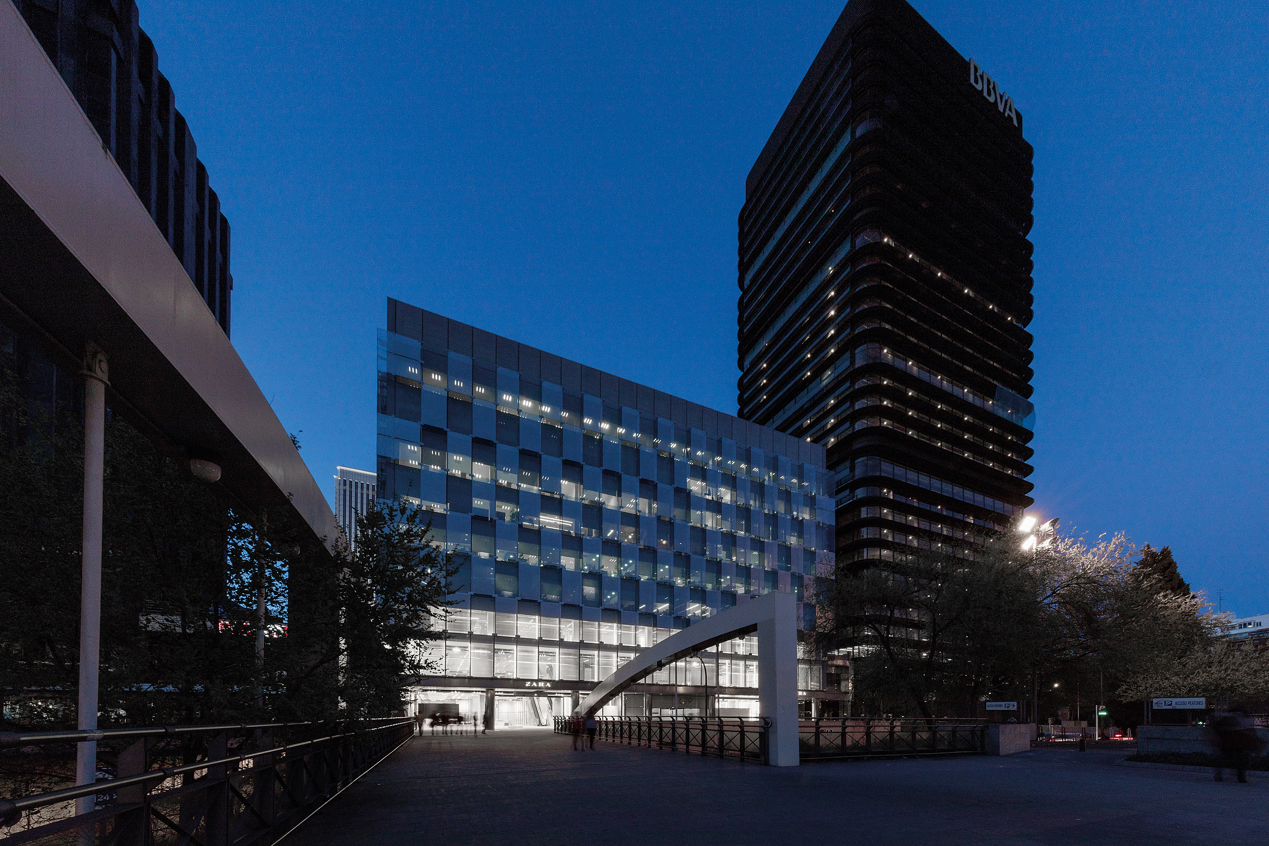 Cuenta con cuatro accesos. Tres de ellos en la planta baja (dos en Paseo de la Castellana y otro en Azca) y otro en la primera planta