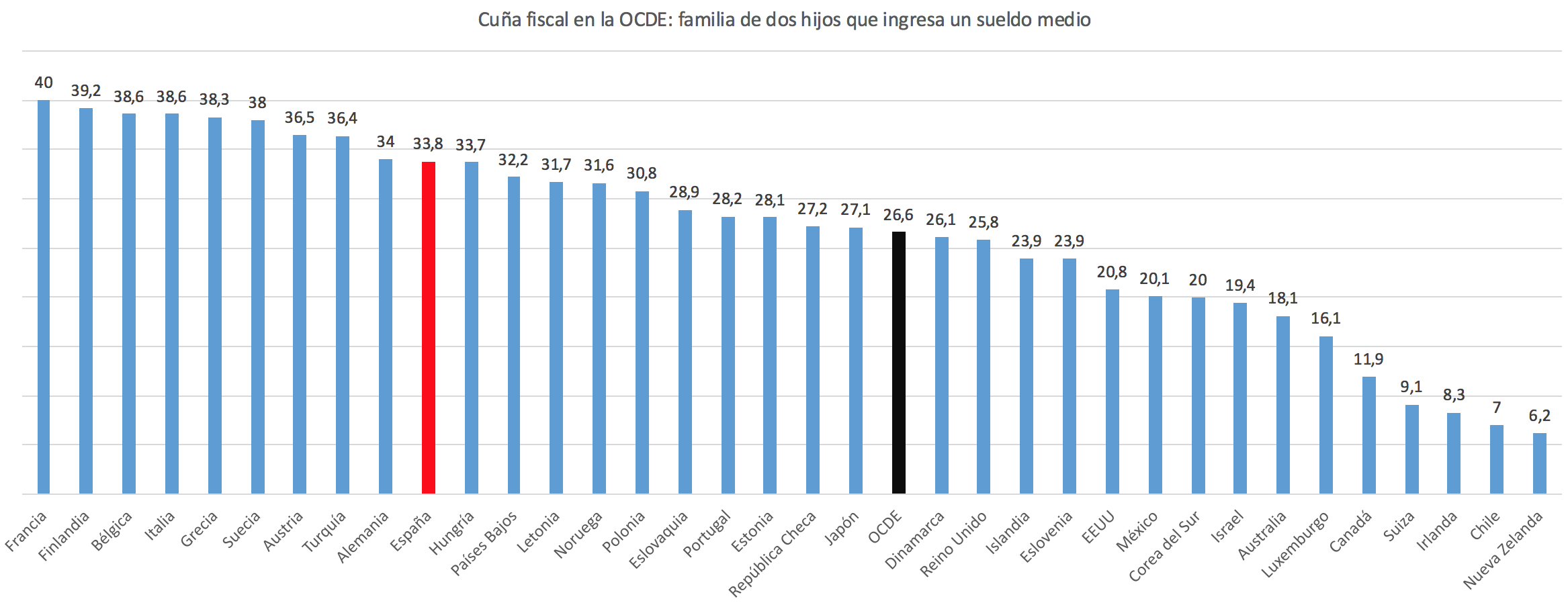 La OCDE acaba de publicar su informe Taxing Wages, que calcula el peso de los impuestos sobre el trabajo en los treinta y cinco países miembros de la organización de economías desarrolladas. De dicho documento se deduce que España es uno de los países que más impuestos cobra a las familias con hijos.