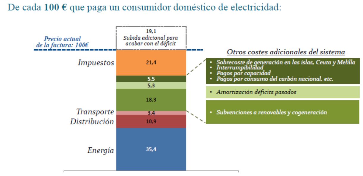 En el siguiente gráfico se detallan cuáles son los costes incluidos en la factura de la luz: