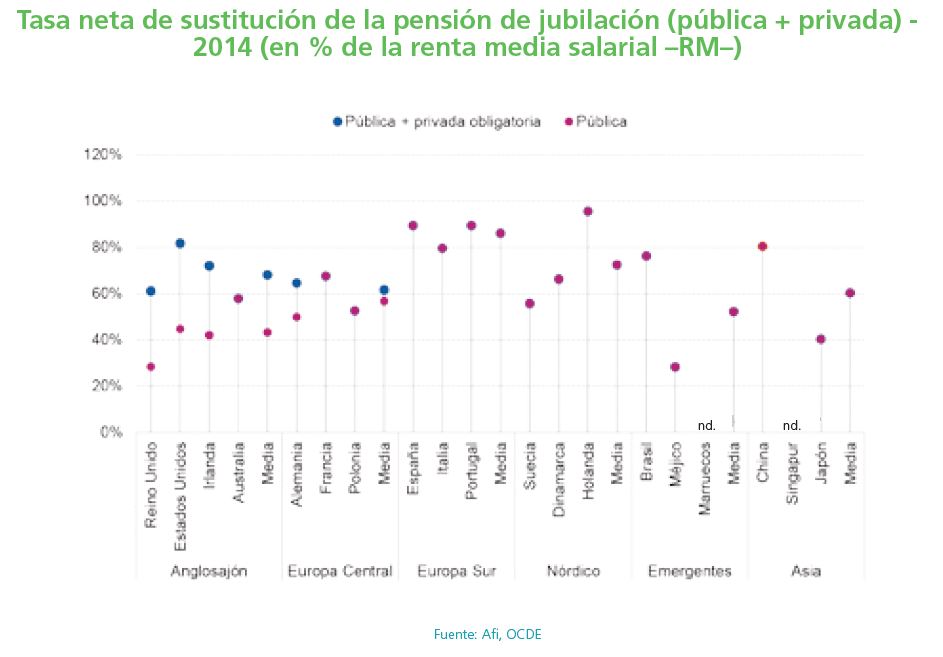 - España tiene uno de los sistemas públicos de pensiones más generosos del mundo con una tasa de sustitución superior al 80% (relación pensión / último salario)