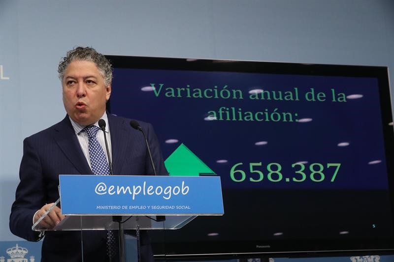 Asimismo, la Seguridad Social acumula un repunte de 658.387 afiliados en los últimos doce meses, lo que supone un aumento del 3,7% interanual, las mejores cifras tanto en términos absolutos como relativos registradas desde 2006, año en el que se produjo la regularización de extranjeros y que, por tanto, no es homologable.