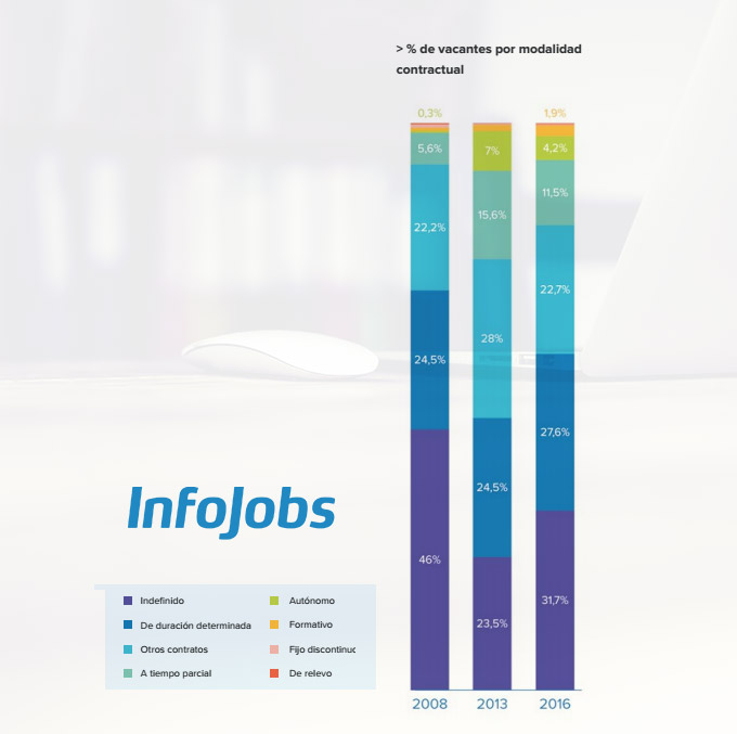 Este jueves, Esade e InfoJobs presentaban su informe anual sobre el Estado del Mercado Laboral en España. El estudio es una panorámica de la coyuntura del empleo a través de las ofertas publicadas en este portal. Por eso, tiene la validez que tiene. Por una parte, puede ser un buen indicador o una buena pista de por dónde van los tiros. Al fin y al cabo, hablamos del líder en este sector de búsqueda de empleos a través de internet. Pero no hay que olvidar que la relevancia estadística es la que es. No dejan de ser los resultados de una empresa.