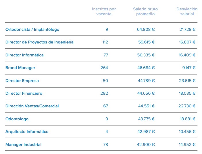 Eso sí, a quien le interese un buen salario a través de InfoJobs también tiene algunas opciones. En la anterior tabla se muestran los sectores que ofertan sueldos más elevados: ortodoncistas e ingenieros encabezan la lista.