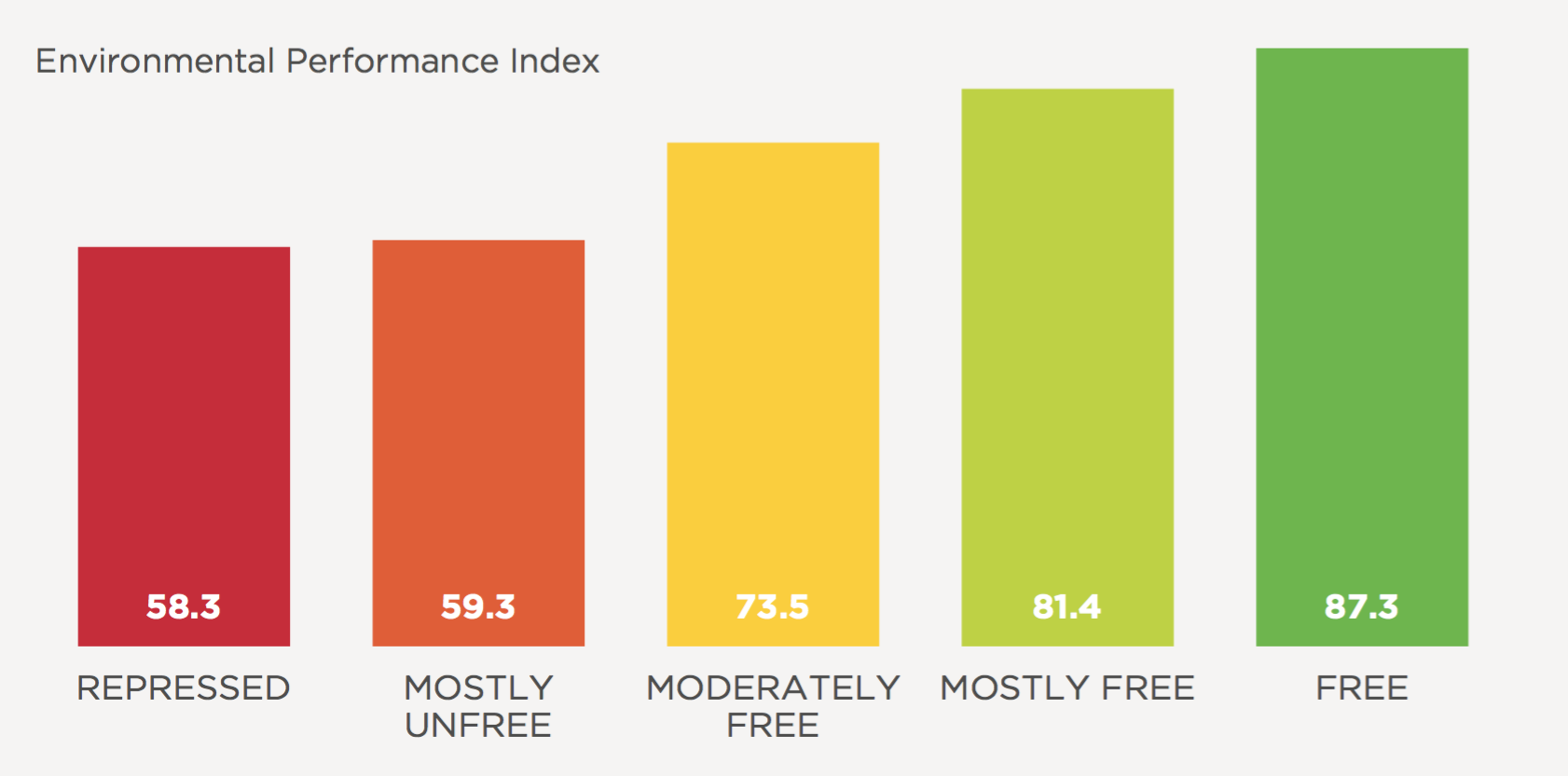 Por último, el Índice destaca el mejor desempeño que obtienen las economías abiertas en la clasificación de la Universidad de Yale consagrada a medir la conservación del medio ambiente. Se desmonta, por tanto, el tópico según el cual el capitalismo merma la calidad de nuestro entorno.