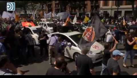 Miles de taxistas se manifiestan en Madrid contra Uber y Cabify