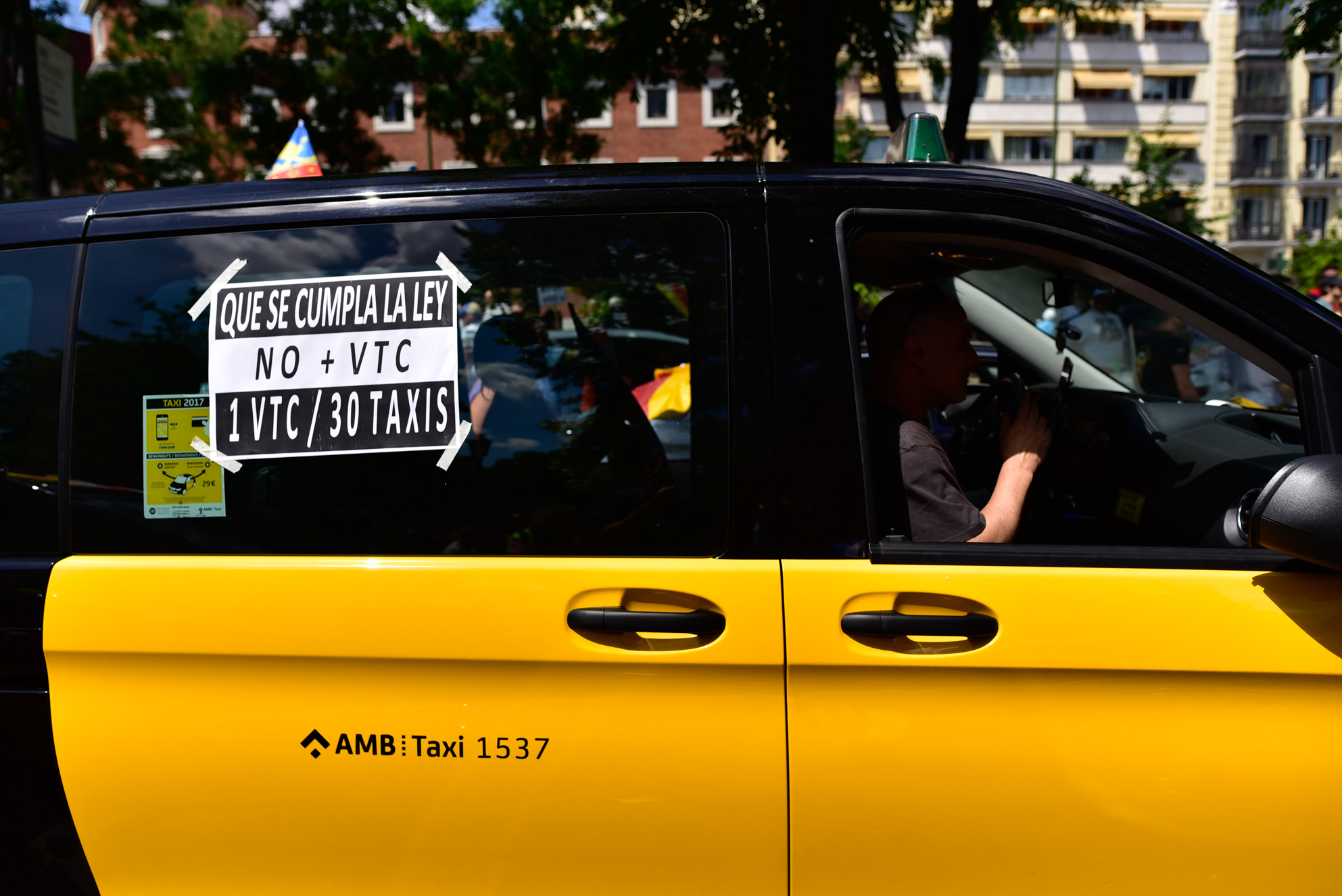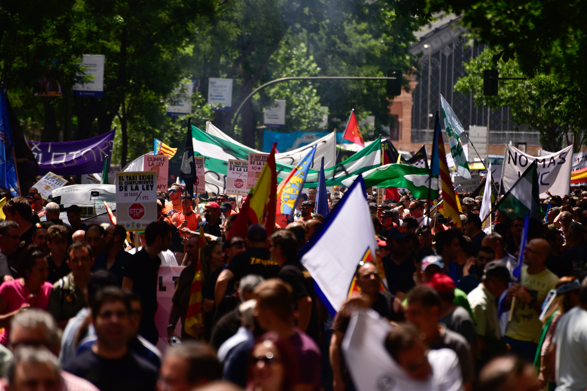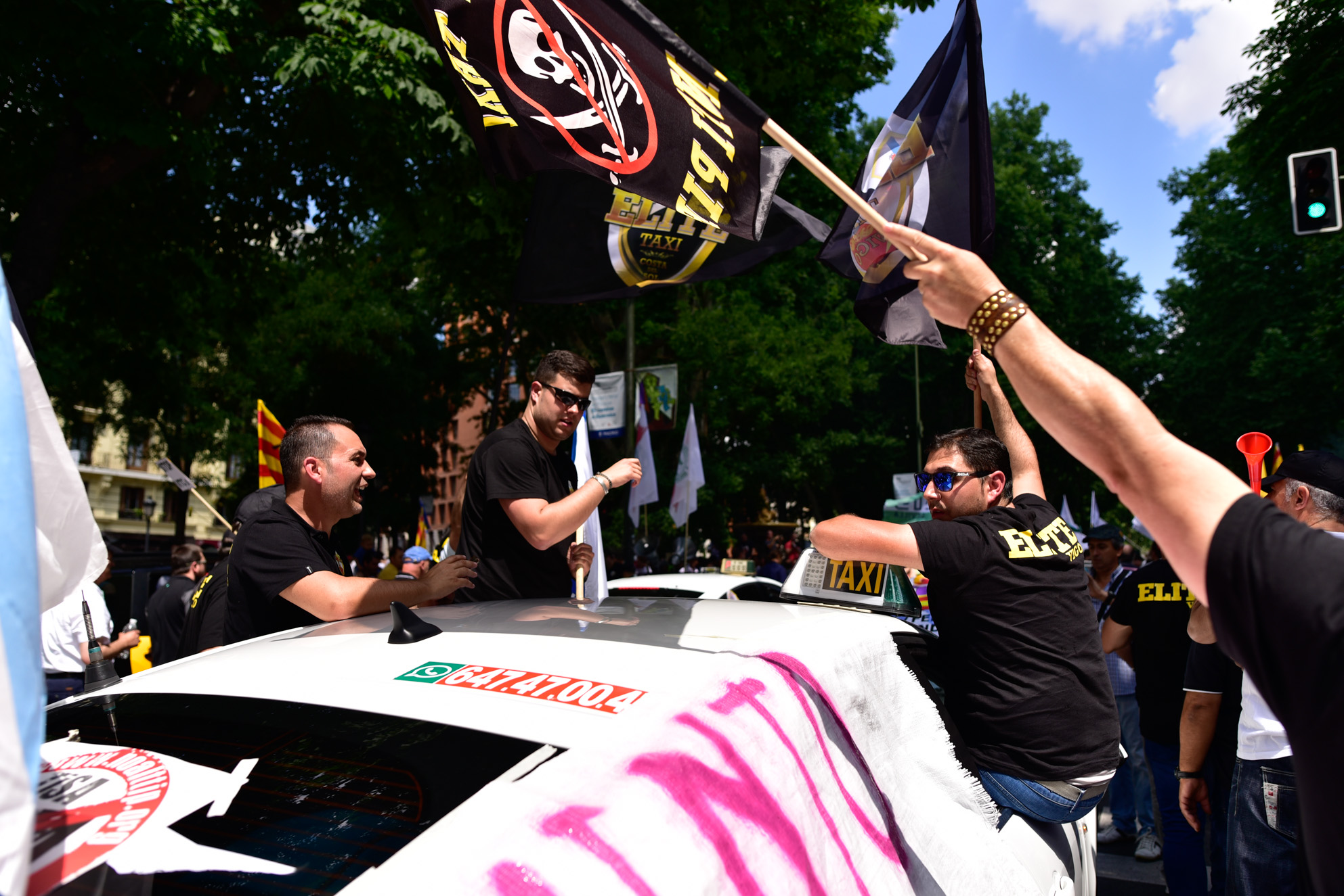 Miles de taxistas toman la calle en Madrid contra Uber y Cabify