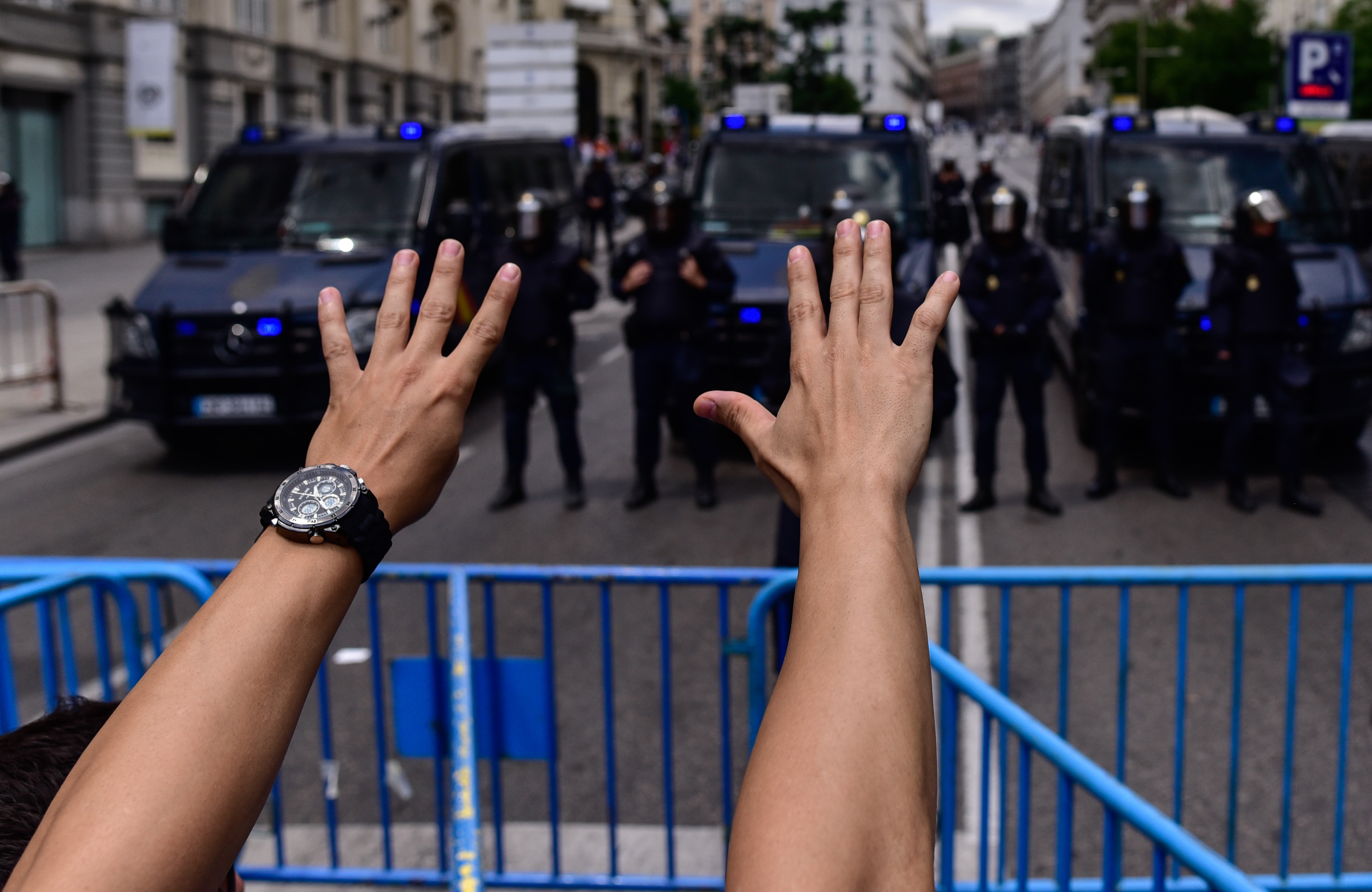 Miles de taxistas se han manifestado este martes, en el centro de Madrid, para exigir al Gobierno medidas urgentes contra empresas como Uber y Cabify. La marcha ha transcurrido sin incidentes de gravedad entre la glorieta de Atocha hasta la Plaza de las Cortes donde ha sido desplegado un dispositivo policial cortando el acceso al Congreso de los Diputados. Pablo Iglesias ha querido mostrar su apoyo a los taxistas en huelga y ha sido alcanzado por un huevo lanzado desde los manifestantes.