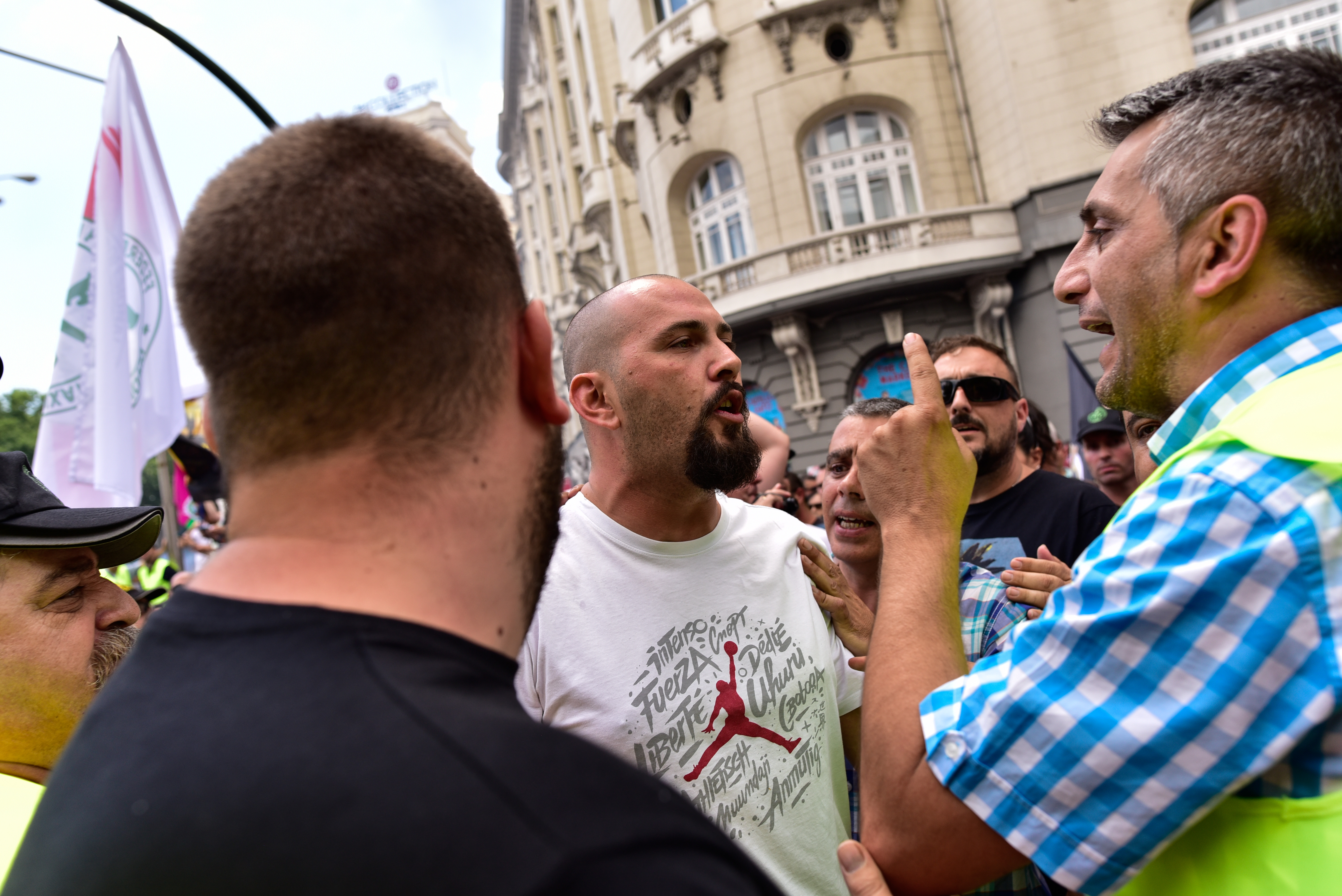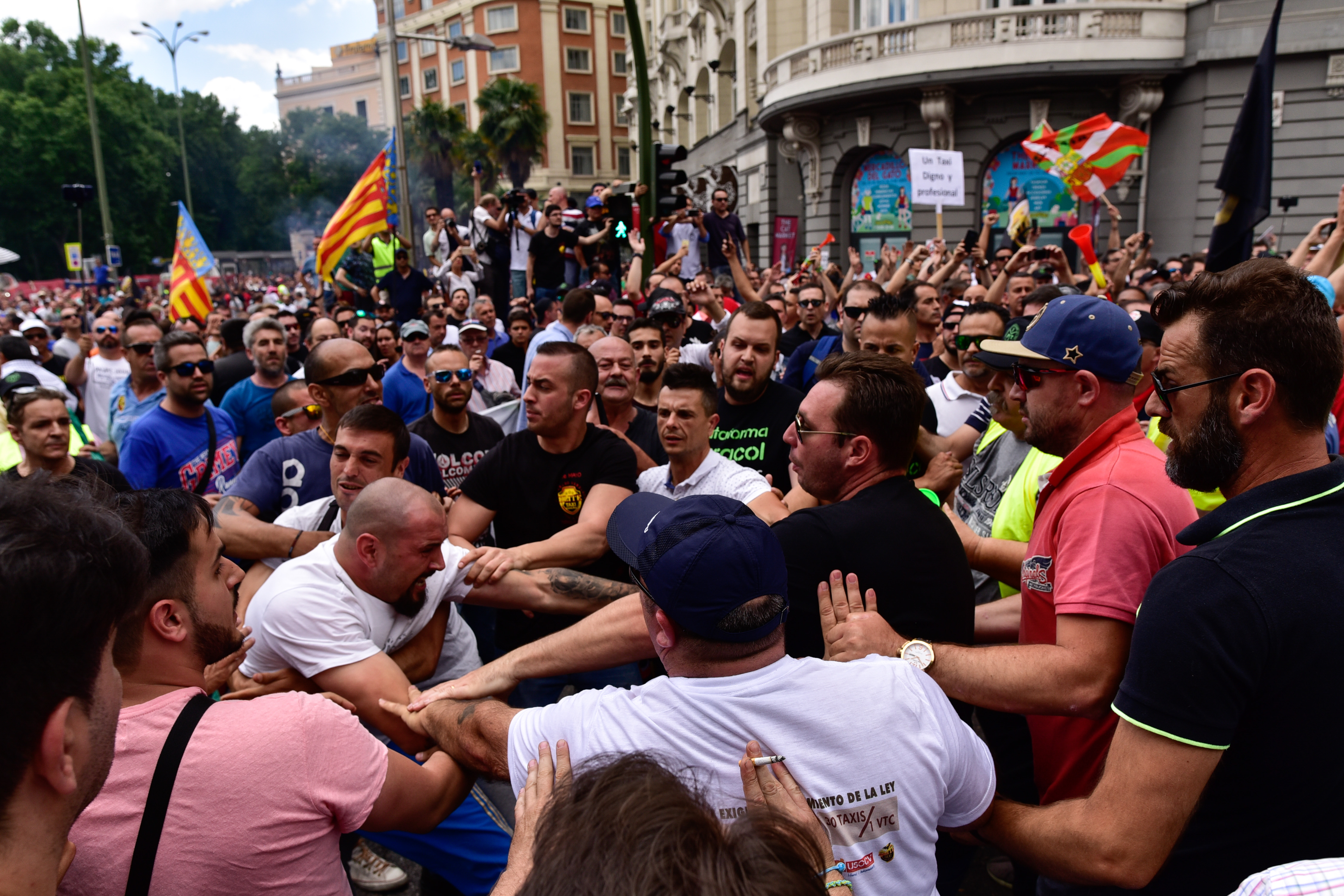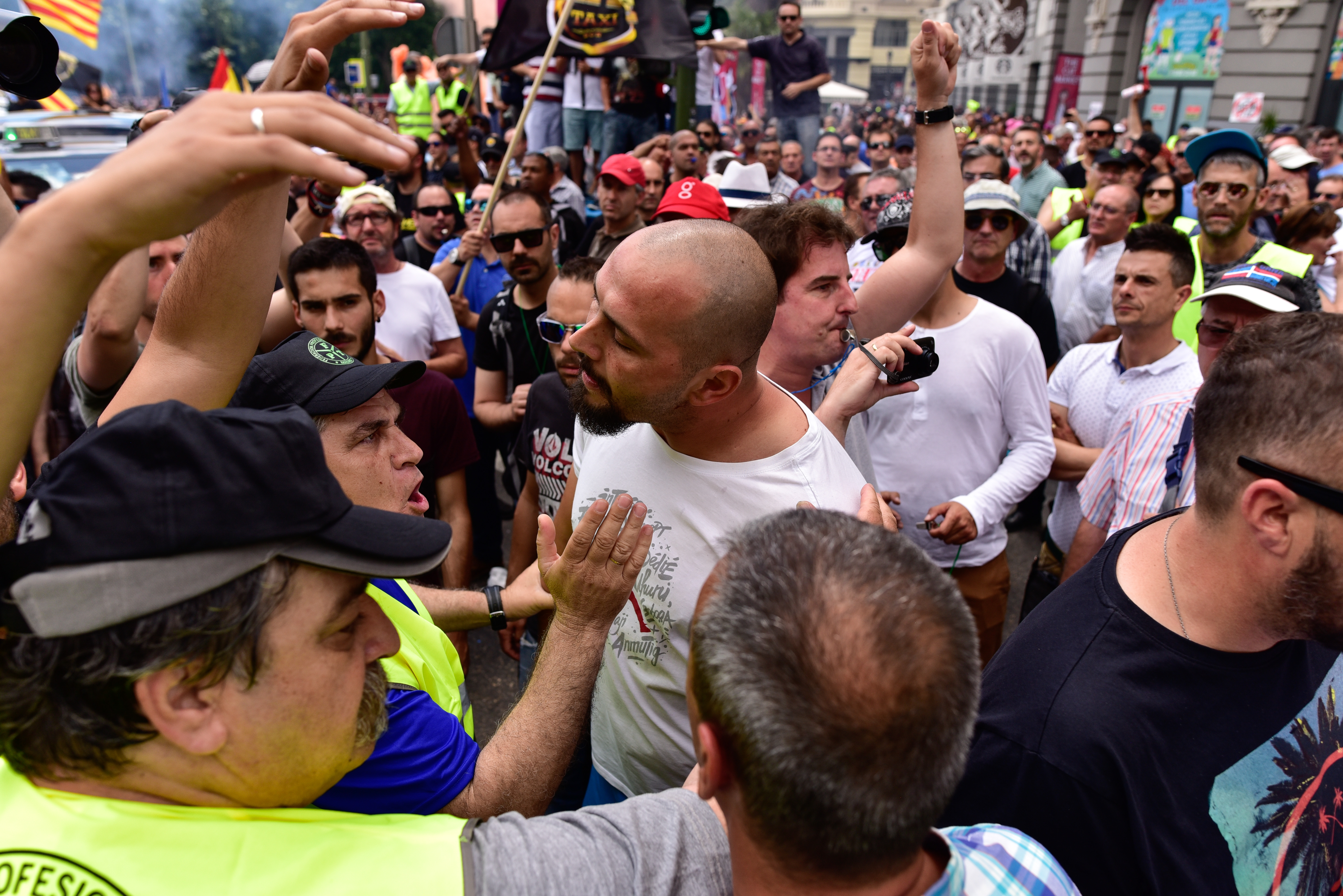 Durante la manifestación se vivieron momentos de tensión entre los taxistas.