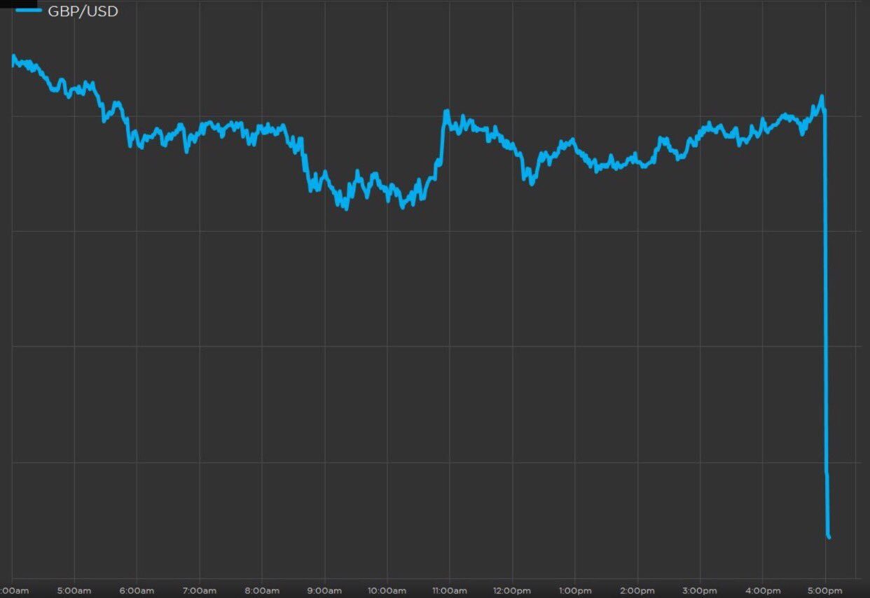 La primera consecuencia de los sondeos a pie de urna que otorgan la pérdida de la mayoría absoluta a los conservadores de Theresa May se ha visto en los mercados. La libra se desploma contra el euro un 1,6% frente al euro lo que está llevando a la libra a mínimos de enero de este año.