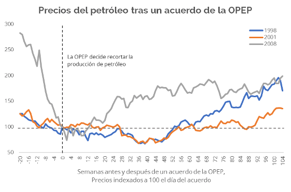 Khalid Al-Falih, ministro de Energía de Arabia Saudita, dijo que haría lo necesario para elevar los precios del petróleo por encima de los 50 dólares/barril, evocando el "hacer lo que sea necesario" de Mario Draghi para apoyar el maltrecho mercado de bonos europeos a mediados de 2012. Sin embargo, la declaración de Khalid Al-Falih puede carecer de credibilidad. En el pasado, los cortes en la oferta de la OPEP tuvieron algún impacto en los precios del petróleo. Esto a pesar de que, como cartel, la OPEP es inherentemente inestable.