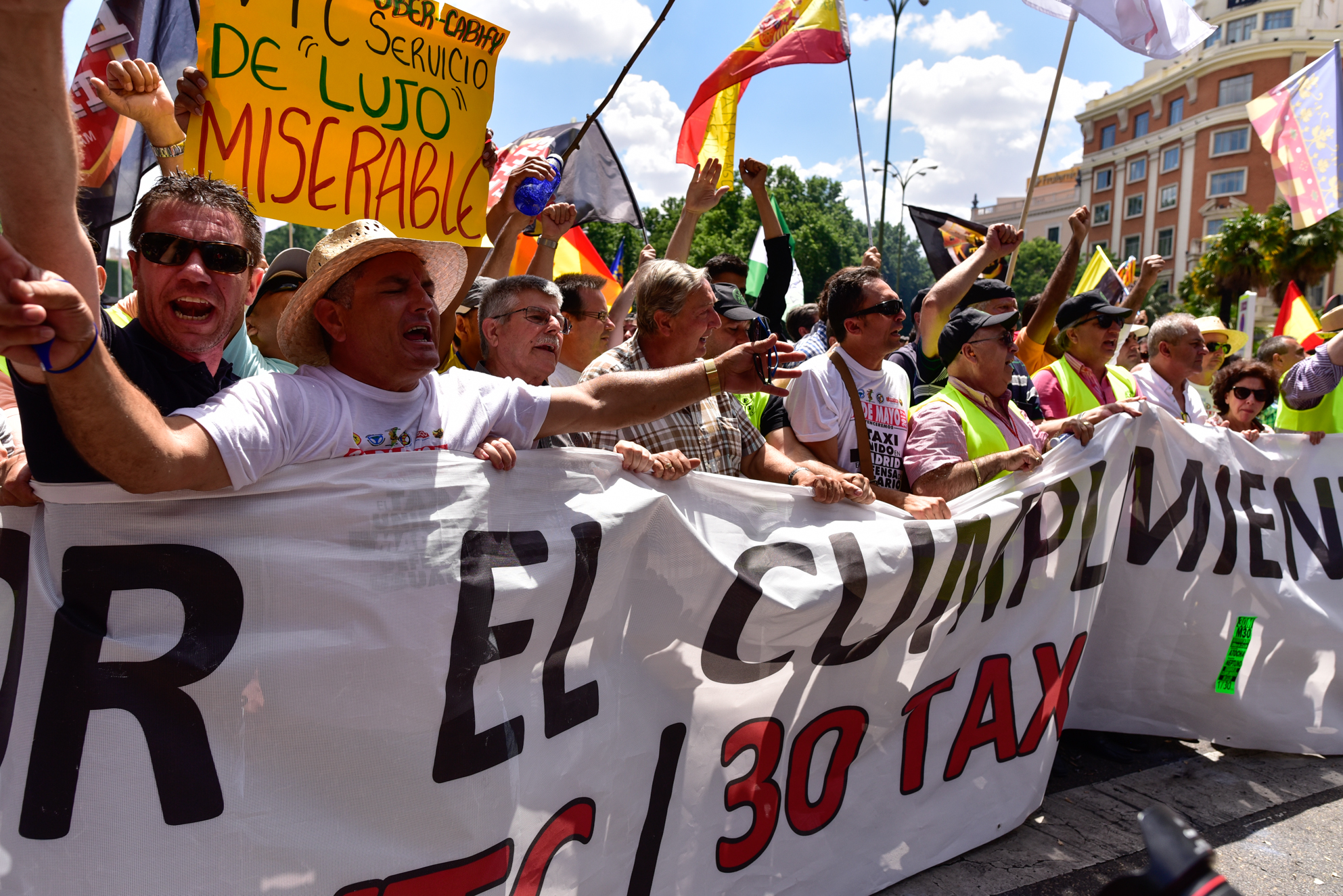 Los taxistas de Madrid están convocados a secundar una huelga de 48 horas a partir de la medianoche de este jueves y hasta las 23.59 horas del viernes convocada por la Asociación Gremial del Autotaxi de Madrid. Con el paro, la asociación pretende protestar ante la "pasividad" del Ayuntamiento de Madrid ante la "reiterada y expresa petición" del sector del taxi de que "respalde de forma contundente" a este servicio público frente a las plataformas como Uber y Cabify.