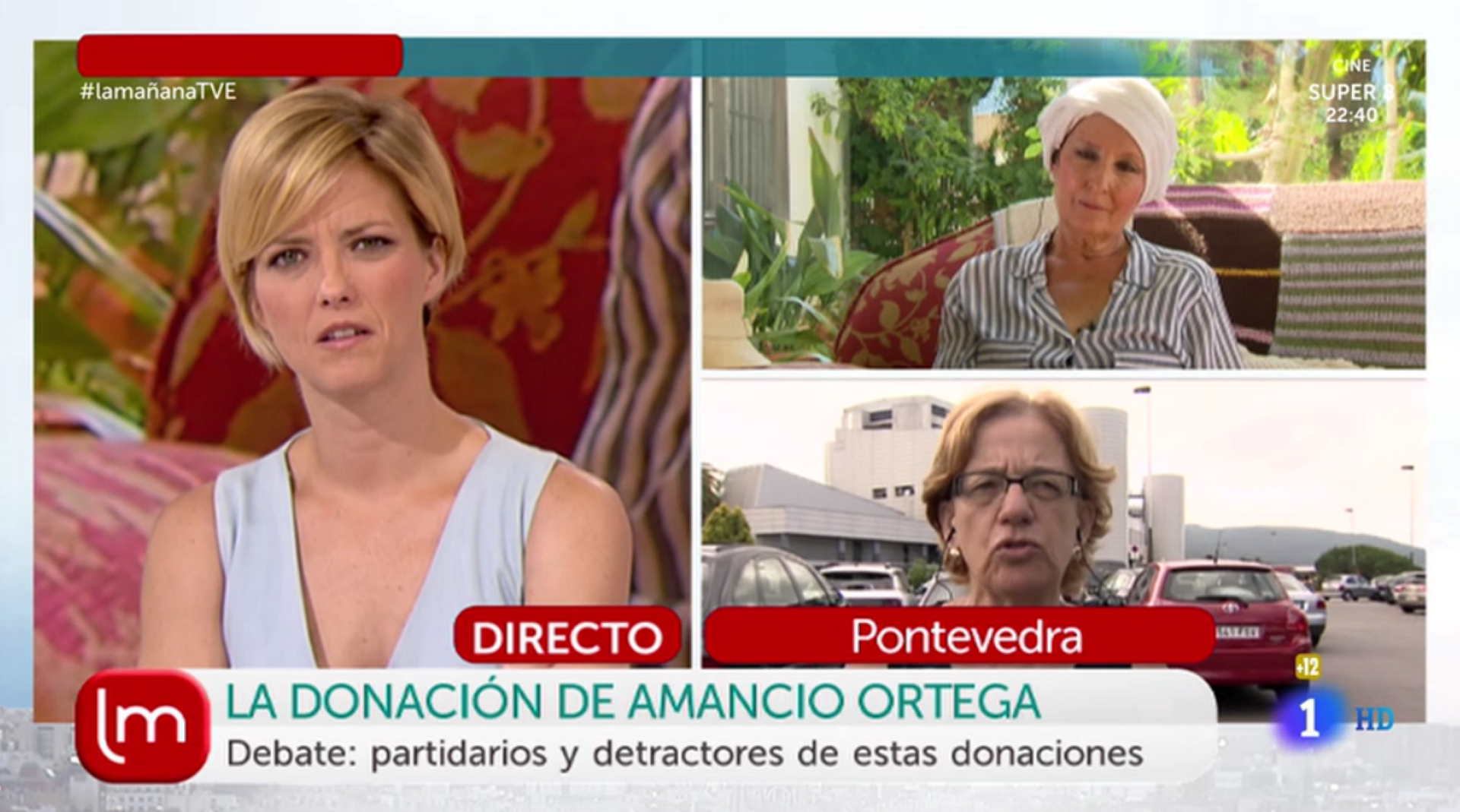 Esperpento en Las Mañanas de TVE. El programa de María Casado organizó un debate sobre las donaciones a la sanidad pública que ha realizado el empresario Amancio Ortega. Por un lado, desde El Puerto de Santa María, intervino Tina, que lleva años sufriendo la enfermedad del cáncer y se posicionó a favor del fundador de Inditex. Por otro lado, desde Pontevedra, tomó la palabra María Luisa Lores, vinculada a la Asociación Gallega de Defensa de la Sanidad Pública.