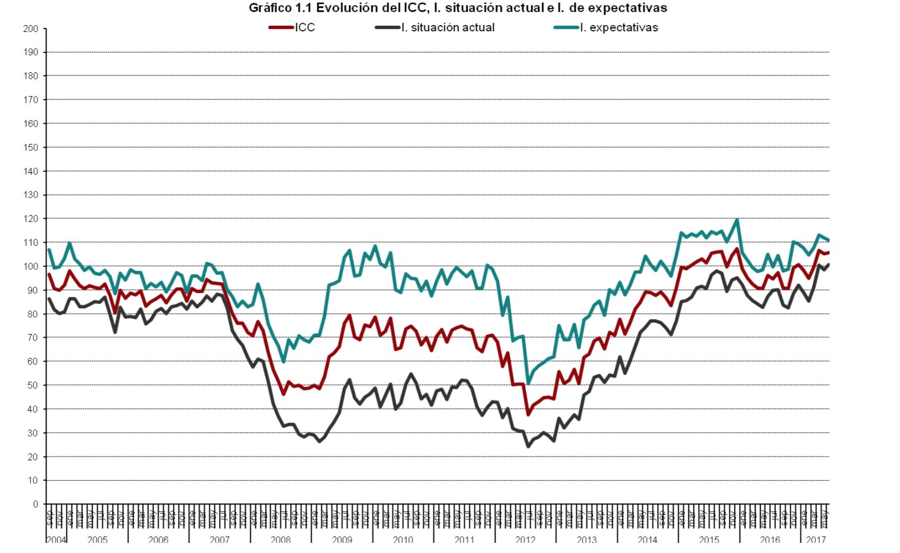 Atrás quedan los fuertes deterioros del ICC que se observaban en los peores momentos de la crisis, cuando se llegaron a dar caídas de entre el 50 y el 60 por ciento en el indicador de confianza de los consumidores.