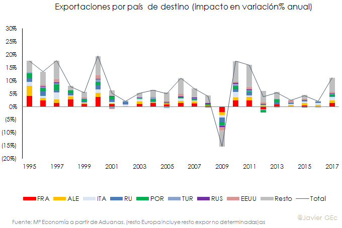 Un incremento de las ventas a la eurozona no es un aspecto negativo, aunque sí lo sería si se acompañara de una menor diversificación de las exportaciones.