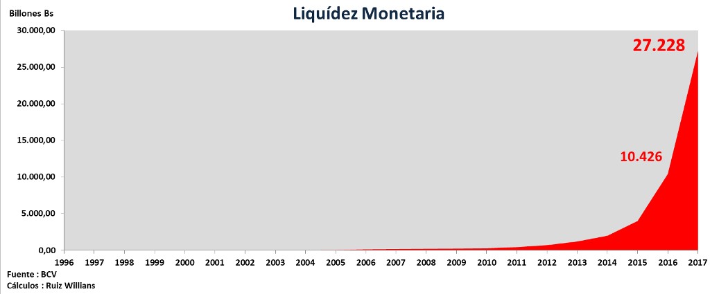 Esta crisis monetaria es la consecuencia de una desbordada impresión de bolívares sin respaldo; la liquidez monetaria ha crecido en 162% respecto a diciembre de 2016, las reservas internacionales continúan en caída y la oferta de divisas se hace cada vez más restringida.