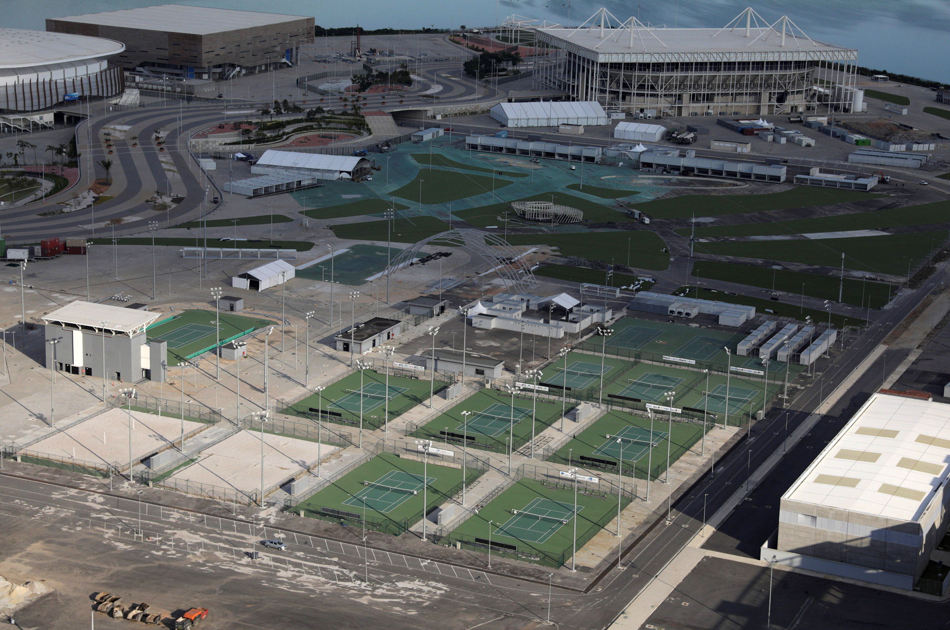 Vista aérea del varias canchas de ténis, abandonadas en el Parque Olímpico de Río de Janeiro.