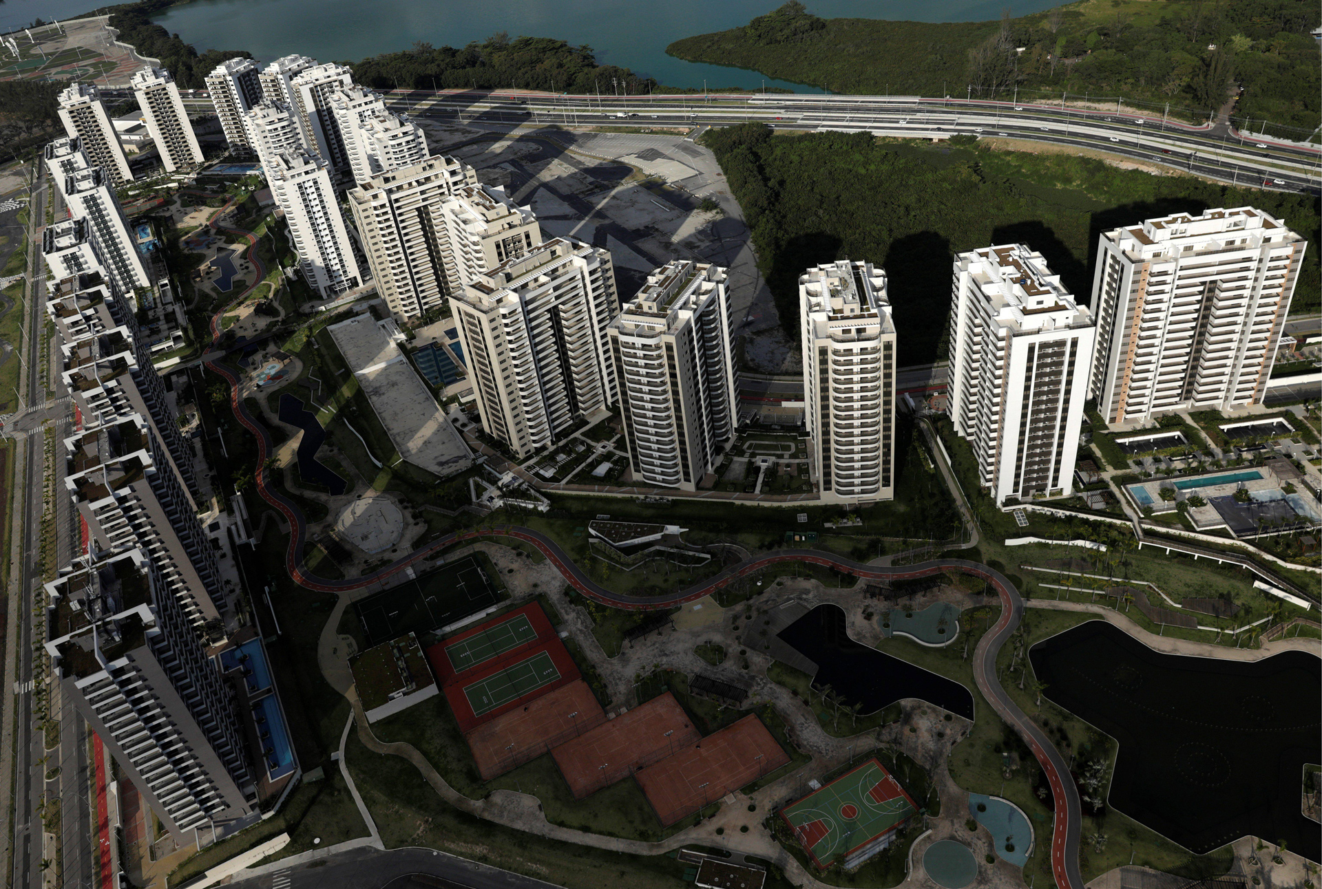 Una vista aérea de la villa olímpica, lugar de residencia de los deportistas durante el evento. Hoy es un barrio sin vida.