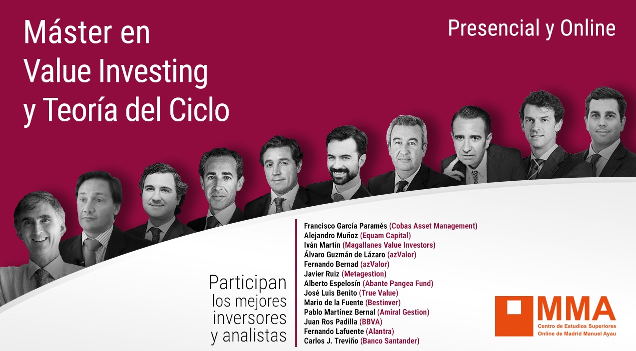 El próximo 26 de octubre arranca la 12ª edición del Máster en Value Investing y Teoría del Ciclo que ofrece el Centro de Estudios Superiores Online de Madrid Manuel Ayau, OMMA. Antes, el miércoles 13 de septiembre a las 20:00h, tendrá lugar una sesión informativa a la que se podrá asistir en directo, ya sea de manera online o de forma presencial en el aula del centro.