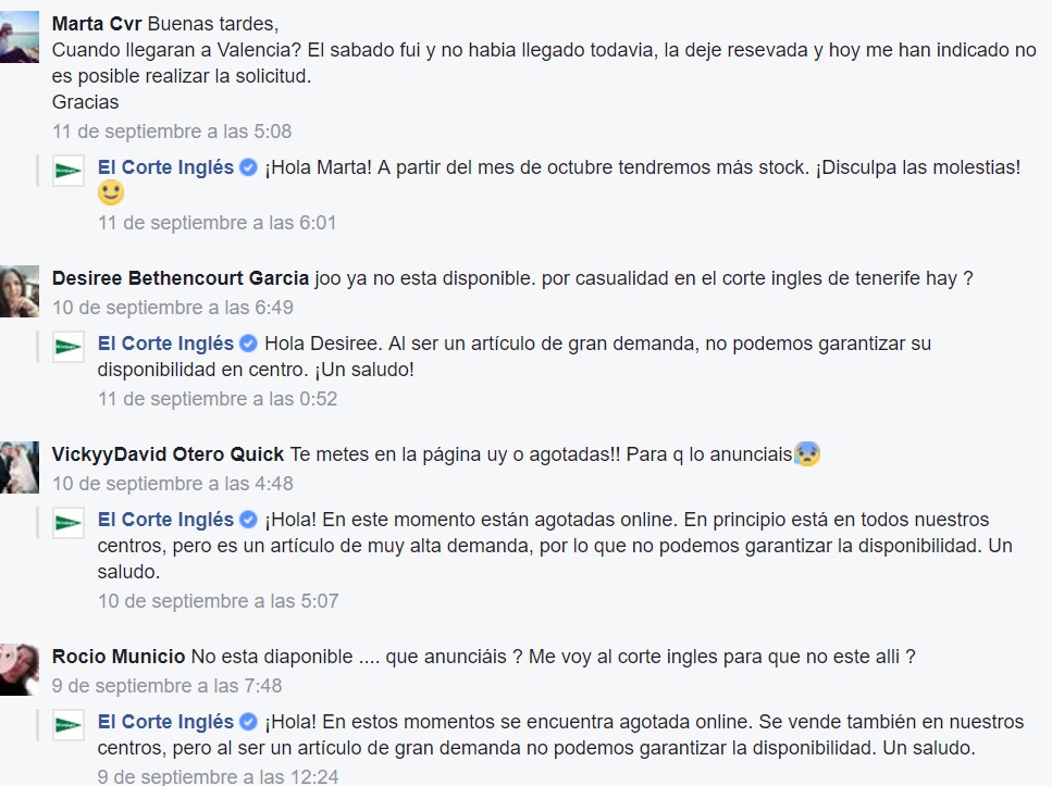 La entrada de Facebook de El Corte Inglés que anuncia la llegada de la famosa taza tiene más de 2.000 comentarios. Según la compañía, en octubre repondrán el stock.