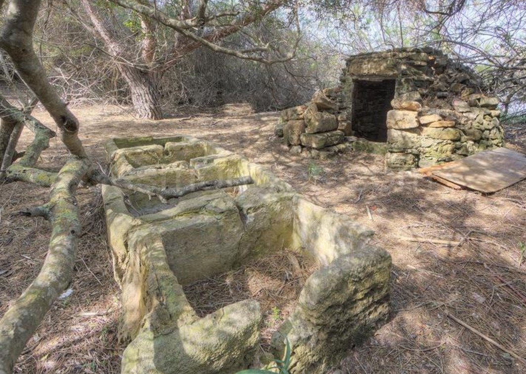 También cuenta con una caseta de 20 m² para embarcaciones en la playa y con los restos de una antigua casa de mineros, los de un establo con una era, además de otras construcciones menores